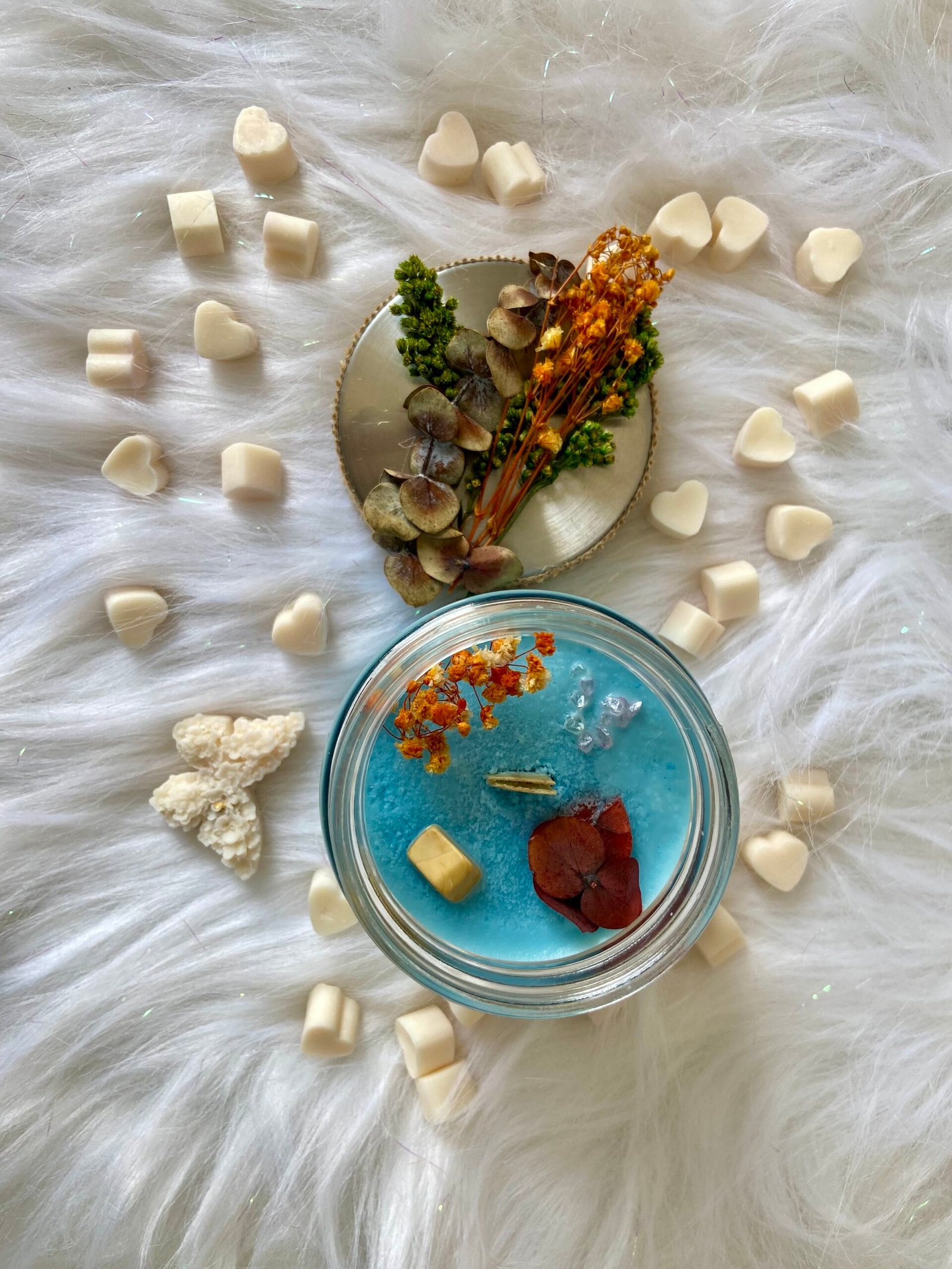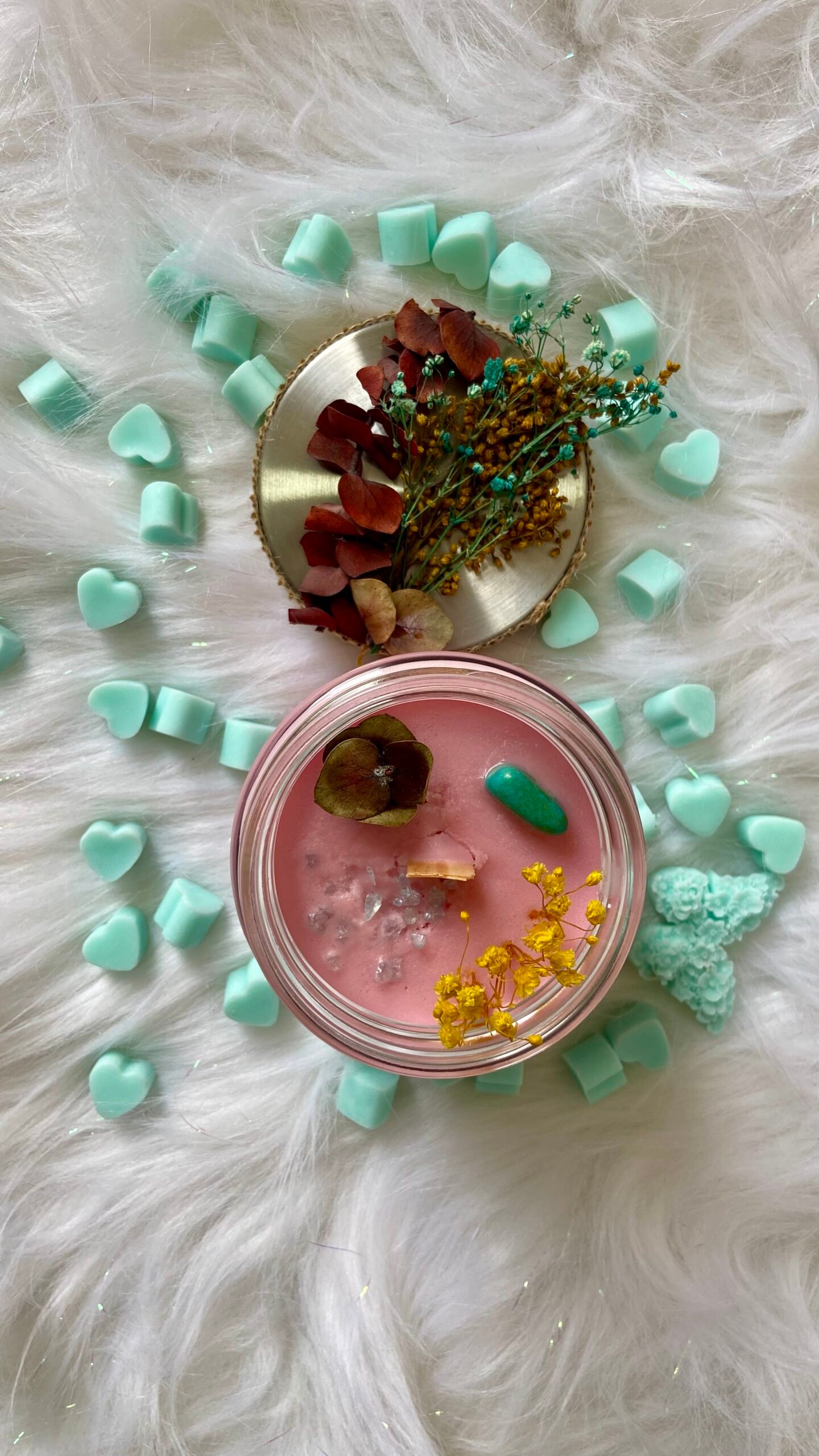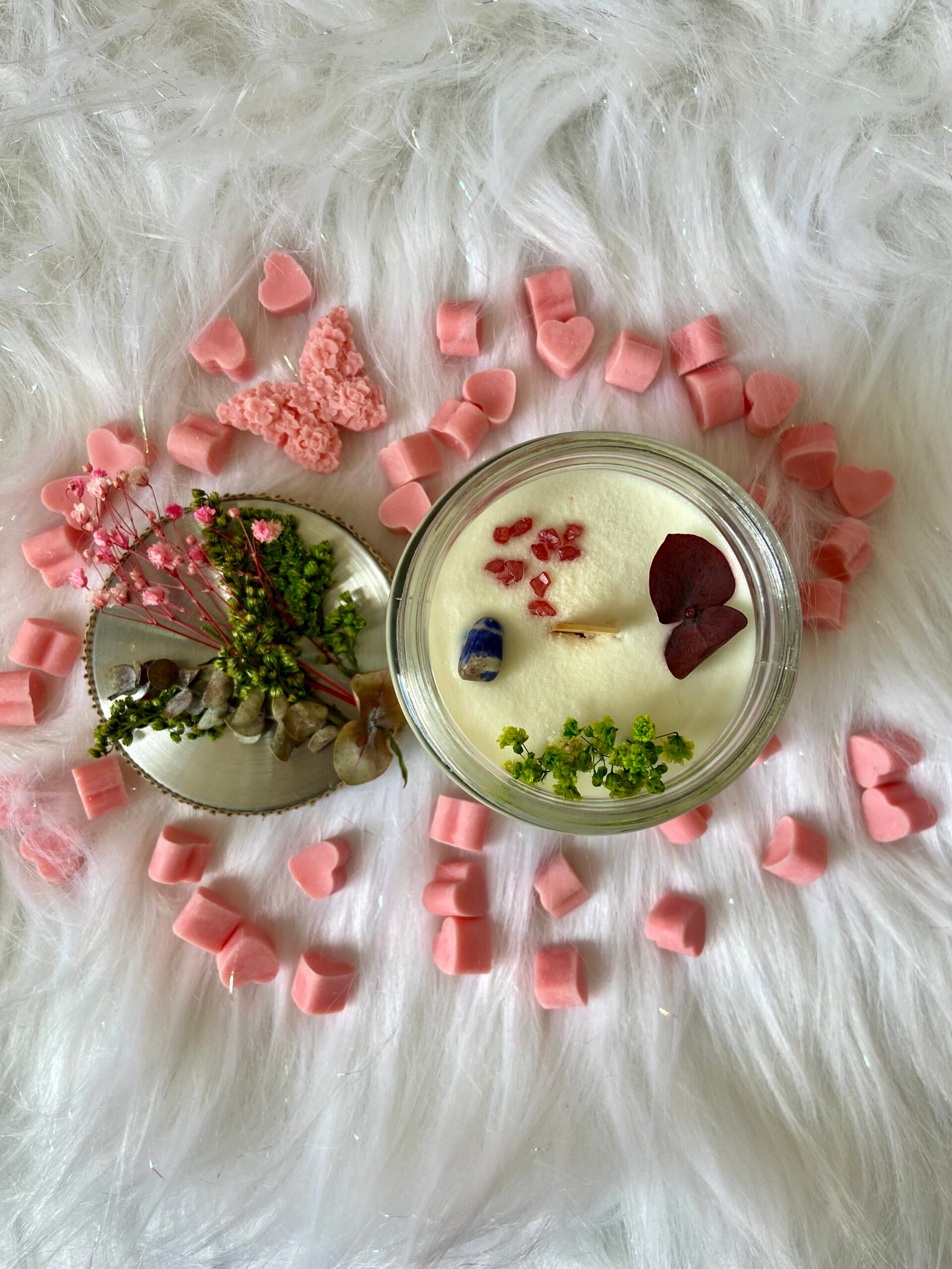 Elaboradas con cera de palma, ofrecen una combustión duradera y cada fragancia nos permite activar sensaciones de bienestar. Al ser velas en frasco de vidrio, se puede admirar la belleza de su quemado. Cuentan con decoración con flores inmortalizadas y cuarzos, lo que permite ser también un elemento de decoración.